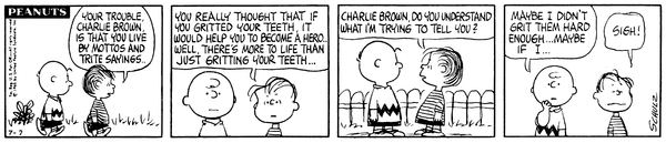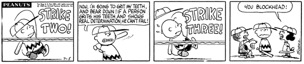 Grit part 7 (Mr. Manager part 298); Chuckson tries to take his advice and show grit and determination but strikes out and so Luc calls him a Blockhead.