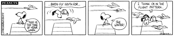 Fly South part 1; Snoop is sitting on his house when Bards stop flying above around and under him and he decides that he's in the flight pattern.