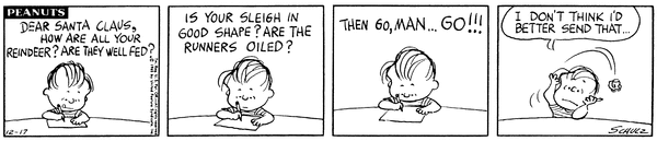 Lins tries to write a letter to the Christmas Provider but is too enthusiastic and tells it to go immediately and realizes it is bad so he throws it away.