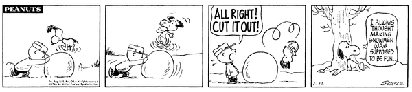 SmartA laughs at the people throwing snowballs at him because he is just annoying because they can't hit him because they won't work together, then they do and destroy him.