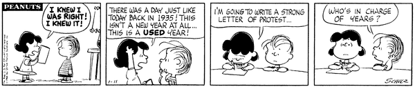 Luucy finds proof that this day is the exact same as one in 1935 and tries to write a strong letter of protest but doesn't know to whom. This year would continue to suck for her family and their two parties.