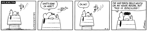 Mother part 1; Snoop is lying around when a Bard flies by and turns his house into her nest to raise her children.