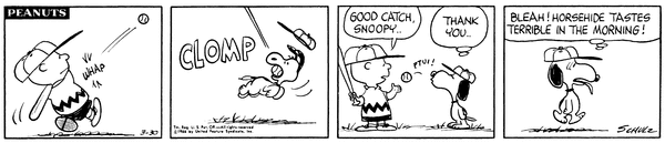 Mr. Manager part 312; Chuckson hits a ball to Snop which he catches in his mouth like always but says that it tastes terrible.