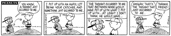 Mr. Manager part 314; Schroed returns the ball to Chuckson and tells him that Beethoven wouldn't do what he is doing.675