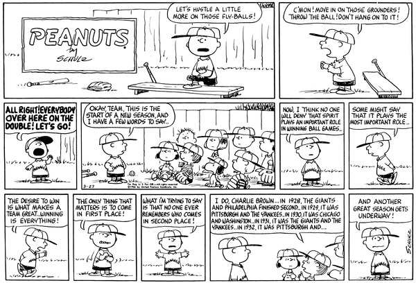 Mr. Manager part 309; Chuckson gives a speech to his team (Five's champion replacing Pig-Pen's on third) and says no one remembers who came in second place, then Lin tells him a bunch of second placers.674; 280; 29