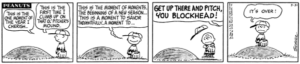 19660402                      Mr. Manager part 315 (WW1 Flying Ace part 23); Chuckson pitches and when the ball is hit it goes directly to Snop, who is messing around.
