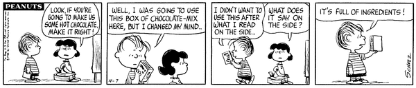 Luucy's daughter asks her step-brother to make her real hot chocolate and he says he was going to use chocolate-mix but it was full of ingredients.