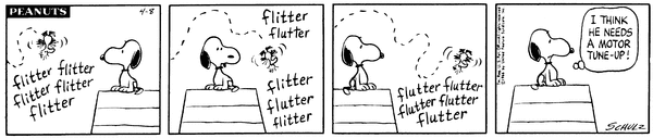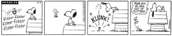 The Warriors fly around the Scavengers but then they crash to the ground and one of the Scavengers remarks that they ran out of flitters.CB 3676 Lucy 2057 Snoopy 1867 Linus 1643 Schroeder 676 Woodstock 12
