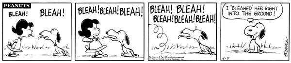 Luucy and Snoop "Bleah" at each other but Snoop wins by bleahing really fast and knocking her over.
