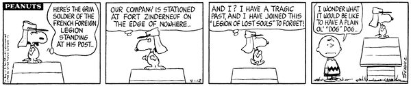 FFLL part 4; The FFLL drops hints to the "audience" (Schulz who is just captivated by this madness) about his past and starts to call himself Beau Snoopy.
