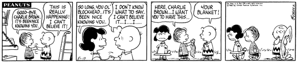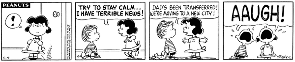 Moving part 1; Luucy hears leaked information from Van Pelt that it is moving itself and Linus and Lucy across the continent due to new availability of jobs there.