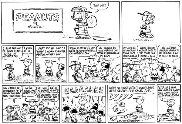 Mr. Manager part 327; Schroed realizes that it is Mother's day and tells everyone it and they all feel awful about playing on mother's day and abandon Chuckson who had been kind to his mother.679; 281; 30