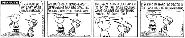 Moving part 2 (Mr. Manager part 328); Lin informs Chuckson about how Linus and Lucy are moving but then goes to wonder what team if any they'll move into, during the last half of the ninth inning.