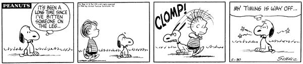 Luucy realizes that Snoop is trying to chomp someone's leg, she volunteers hers but she says that he'll be sorry so he ends up not doing it.