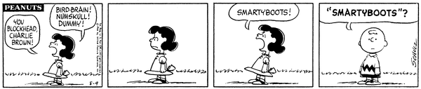 Luucy and Chuck get into an argument and she brutally insults him by calling him stupid in different terms but she finished it with smartyboots.
