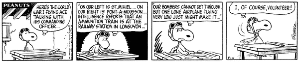 Special Mission part 4(WW1 Flying Ace part 38); The Ace messes around and when a Linusian patient passes him he "attacks" him with bleahs and "kills" him.