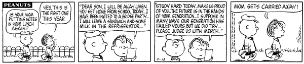 Lins' son gets a note from his mother in his lunch and it goes on about the future and his generation.
