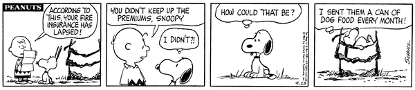 Burnt Down part 5; Chuck discovers that the insurance on the Doghouses have lapsed because the Scavengers just sent them food every month.
