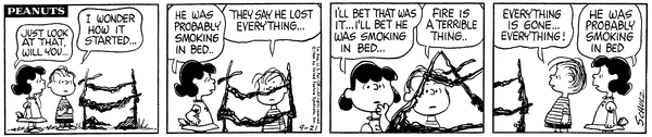 Burnt Down part 1; The Scavengers suddenly find that their Doghouse fleet has caught on fire and wake up the Charlie Brown-Snoopy Liaisons to try to help but they can't do anything.