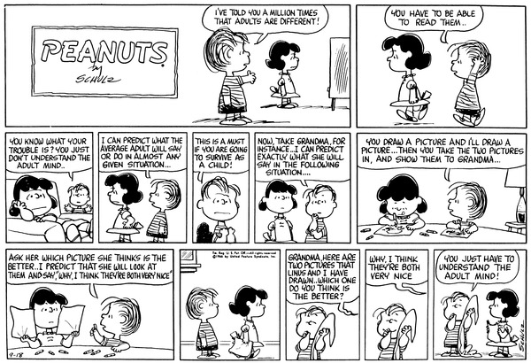 Lins' son tells his stepsister that he knows how to predict every single adult's actions and shows it by asking her grandmother whose picture she likes more, she says they're both very nice like expected.