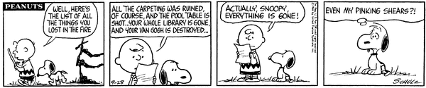 Burnt Down part 9; Chuck takes an inventory of everything that was lost in the Doghouse fires but realized that the list is every single object there.