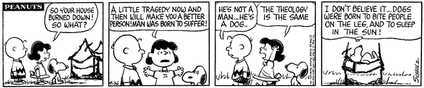 Burnt Down part 7; Luucy talks about how people were born to suffer and the Scavengers should stop whining, Chuck points out that they are Doges but she says the theology is the same, a nearby Scavenger says Doges were born to be lazy.