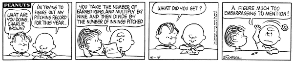 Mr. Manager part 364; Chuckson calculates his pitching record for the year but once he finds it he finds it too embarrassing to say.