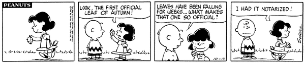Luucy shows off the first official leaf of autumn, even though leaves have been falling for weeks because she was able to notarize it.