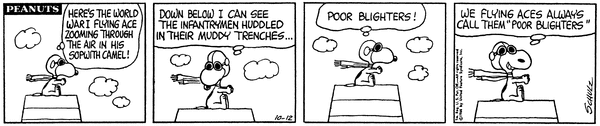 WW1 Flying Ace part 46; The Ace pretends to fly around and when he notices the other patients below he calls them blighters (thinking they are infantrymen).