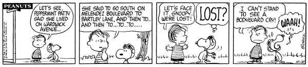 Patty to Pumpkin part 5; Pamela finds Lins and the Scavenger wondering around and leads them into Peppermint Patty but is confused about the Scavenger's uniform.