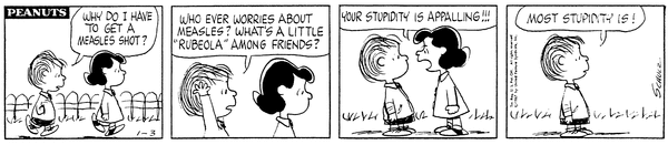 Measles Shot part 2; Lins' son complains about how he has to get a shot and that measles is nothing but Luucy calls his stupidity appalling.