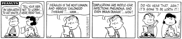 19670105                       Measles Shot part 4; Luucy gives Lins' son a pamphlet on measles that convinces him that getting his measles shot will be worth it.