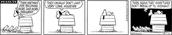 Snoopy's Scavengers talk to Peanuts TV about how most of the time the Bard meetings are short but that night the meetings last until midnight.