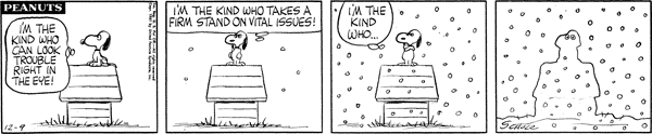 Snoop stands on his house to take a stand but it snows and covers him. Chac starts appointing generals to help him keep Faron in line.CB 2842 Lucy 1474 Snoopy 1228 Linus 1059 Schroeder 564