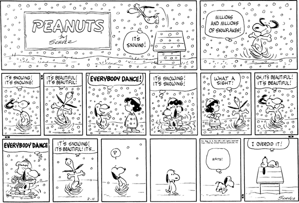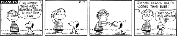 Glasses part 9; Linus shakes down Snoopy's Scavengers for the enhancements but they decide Linus was jealous of them.