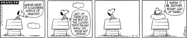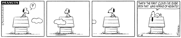 Snoopy's Scavengers watch a cloud fly by their Doghouses, when they are on the ground and call it a cloud afraid of heights.