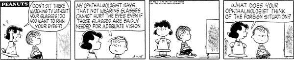 Glasses part 14; Lu gets mad at Linus and wants to attack it but because of the enhancements doesn't. Luck announces he won't seek reelection as a representative and instead will be running as a legislator in Charlie Brown.