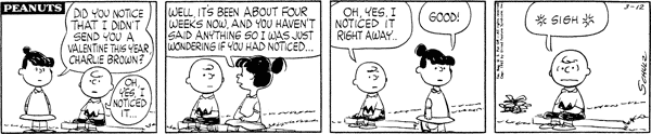 Violet reminds Charlie Brown it didn't share Valentines celebration by asking if the leaders noticed, they certainly did.