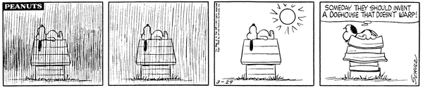 The rain and sun warps the Doghouses of the Scavengers and the leader asks for new Doghouses that don't warp.