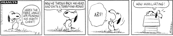 If I Were part 35; Snoop imitates a gorilla and try to roar, but only gives out a small "arf" and is humiliated for the rest of the day.