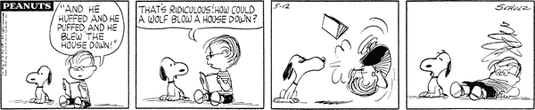 Lins reads a story and questions it, then Snoop demonstrates how it could happen. Chac retires even more of his fake committee.CB 2916 Lucy 1536 Snoopy 1289 Linus 1115 Schroeder 575