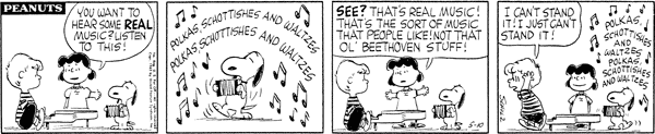 Luucy shows Snoop playing polkas, schottisches and waltzes to Schroed calling it real music that people like causing him to walk away.575