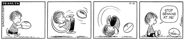 Lins' son tries to learn to play football but fails miserably and thinks the football has started to grin at him.