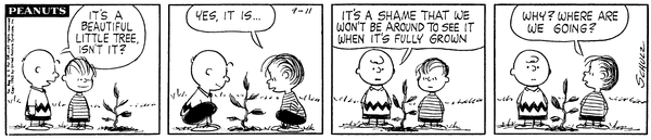 Chuck has Lins' son plant a small tree but he regrets that they won't be around when it's fully grown and he wonders where they will be grown.