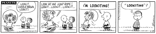 Fried's daughter makes Chuck and Lins' sons "lookit" at her jumping rope and Chuck's son gets annoyed and says that he's lookiting.60