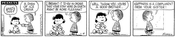 Lins' son gives Luucy's daughter ice cream to try to be a better brother and she thanks him while he says happiness is a compliment from your sister.