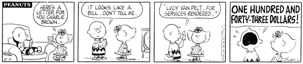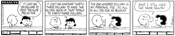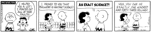 Faults part 13; Luucy tells Chuck that she proved that psychiatry is an exact science, since he owes her exactly $143.