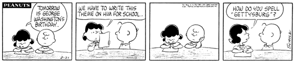 Luucy's daughter has to write a paper about George Washington but asks Chuck's son how to spell Gettysburg (just as silly in that world).