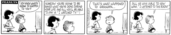 Luucy tells Lins' son that one he gets older someone will ask him what he did and he'll say that he watched TV, which is what his Grandpa said.
