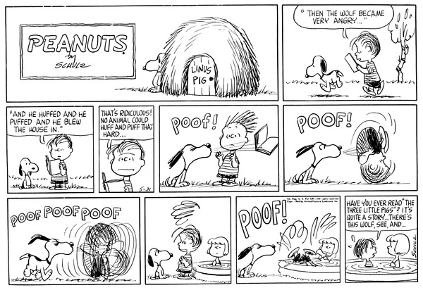 Lins' son reads "Three Little Pigs" to Snoop and calls it ridiculous, then he blows him into a pool where he tells Batricia about the story.